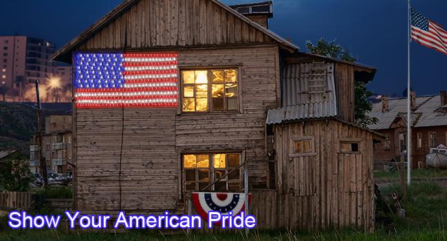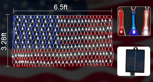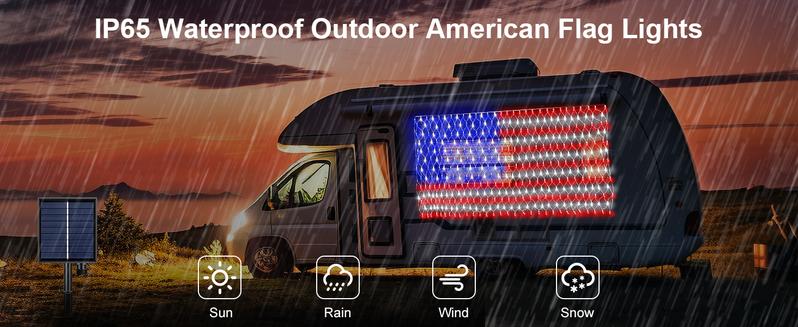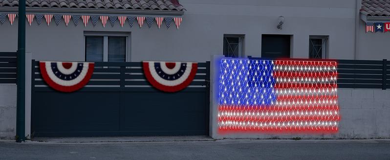 Wide application :American flag lights for 4th of July decorating as a patriotic lights, used for Memorial Day, as a USA outdoor flag for farms, cool house gifts, navy gifts for men in the military, holiday decor gifts, veterans day gifts, Christmas yard outdoor decorations, window display lights, summer decorations for home. Waterproof LED Flag Net Light